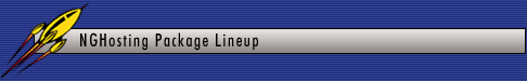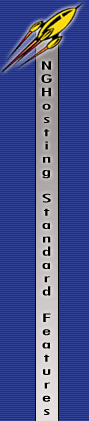 | RAID 5 Protected Storage Space High Quality Bandwidth Add-On Domains NGHosting Standard Feature Set Dedicated IP Address | 500 MB 20 GB 5 | | | Pricing | Setup 1 Month Price 3 Month Price 6 Month Price 12 Month Price Domain Registration | Waived (For a limited time) $19.95 /month $18.95 /month $17.95 /month $16.95 /month $20.00 /year | | |  | |